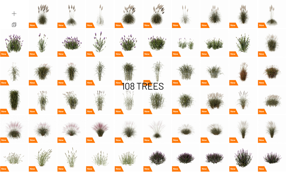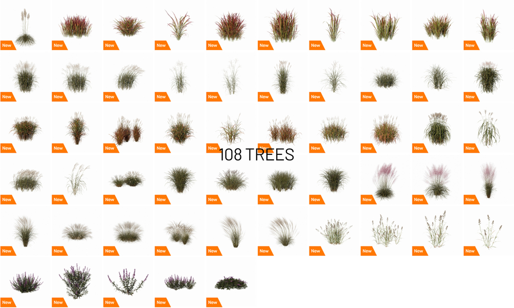 Vol 9 is a collection of high-quality 3D grass models. Includes 12 species, total 108 single models.